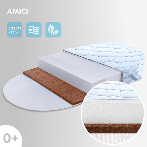 Детский овальный матрас Nuovita Amici 125х75х12 см оптом